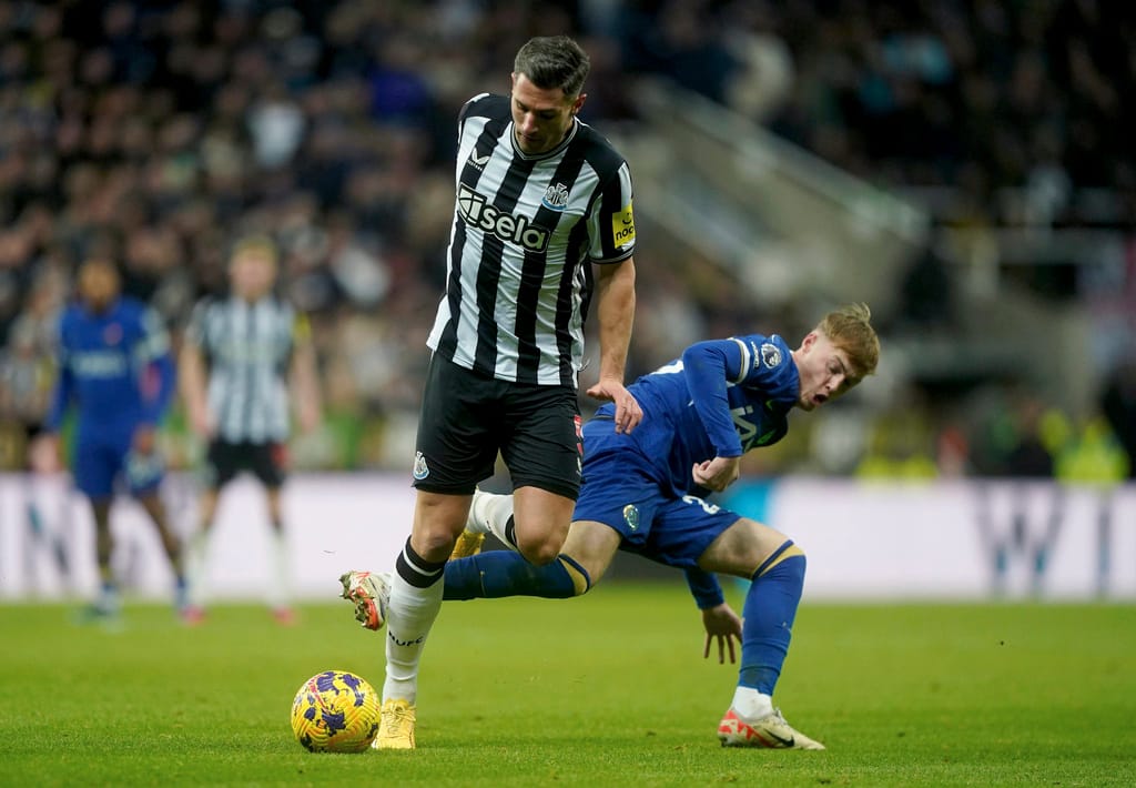 Newcastle United’s Fabian Schar (left) and Chelsea’s Cole Palmer vie for the ball during their Premier League match. (PA/AP pic)