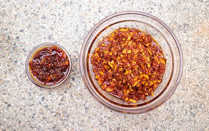 Sediakan kuantiti minyak cili yang banyak supaya kerena ia boleh disimpan untuk tempoh yang lama. Oleh sebab kondimen ini tahan lama, resipi ini sesuai untuk disediakan jika anda akan belajar atau melancong di luar negara dan memerlukan tambahan kepedasan makanan anda.