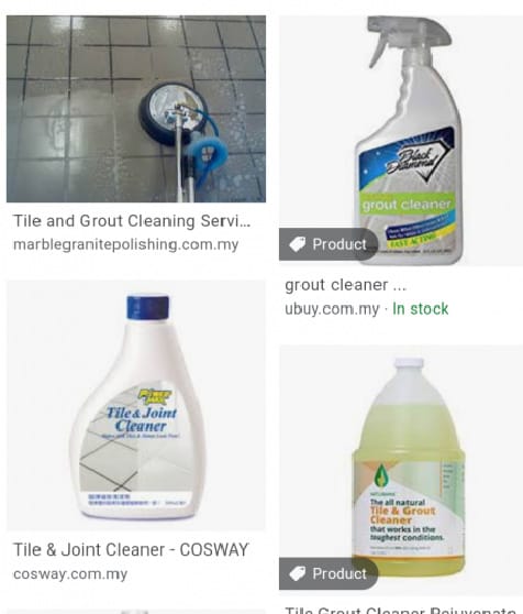Satu lagi yang boleh kita cuba ialah pencuci lantai yang bagus. Kalau boleh ia dilabel sekali dengan “grout cleaner”.