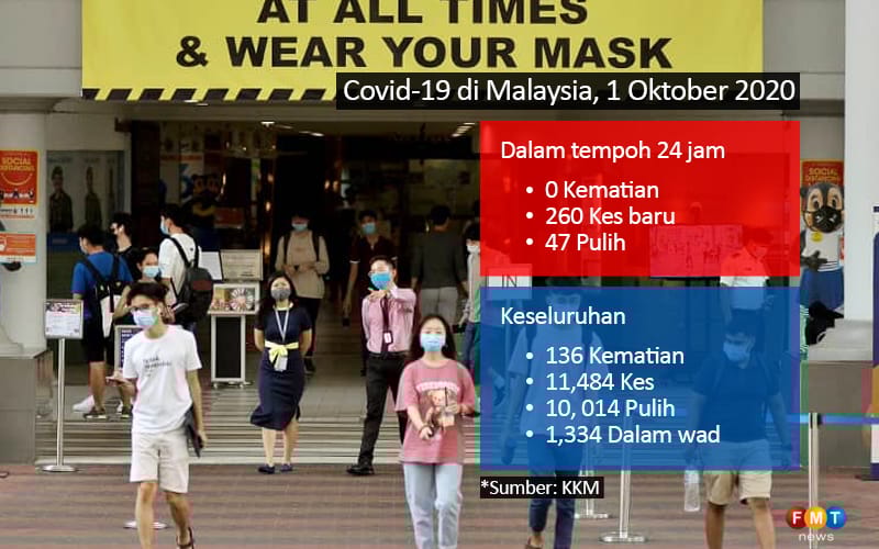 Ketua Pengarah Kesihatan Dr Noor Hisham Abdullah berkata, daripada 260 kes baru itu, 259 adalah penularan tempatan dan 1 kes import.