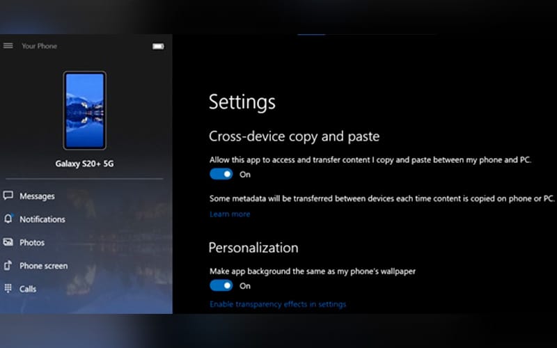 To enable this feature made possible by a Microsoft and Samsung partnership which began last year, smartphones must be installed with the Your Phone application, a smartphone app that connects your desktop to your handset.