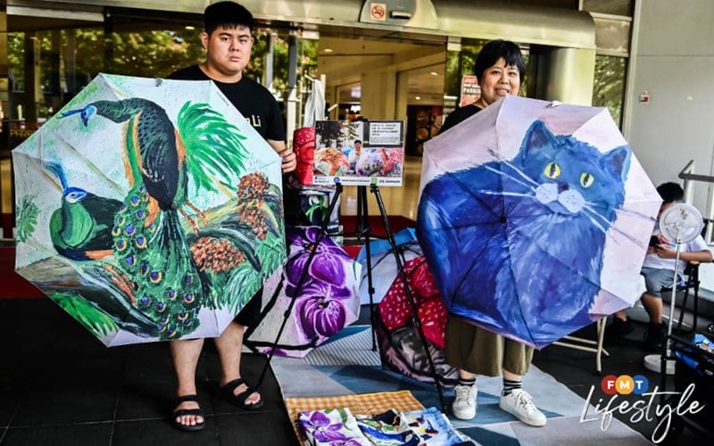 One glance at his wares at Youni market in Selangor’s Subang Parade makes this evident – dogs, cats, elephants, flowers and much more are vibrantly splashed on umbrellas, t-shirts and tote bags.