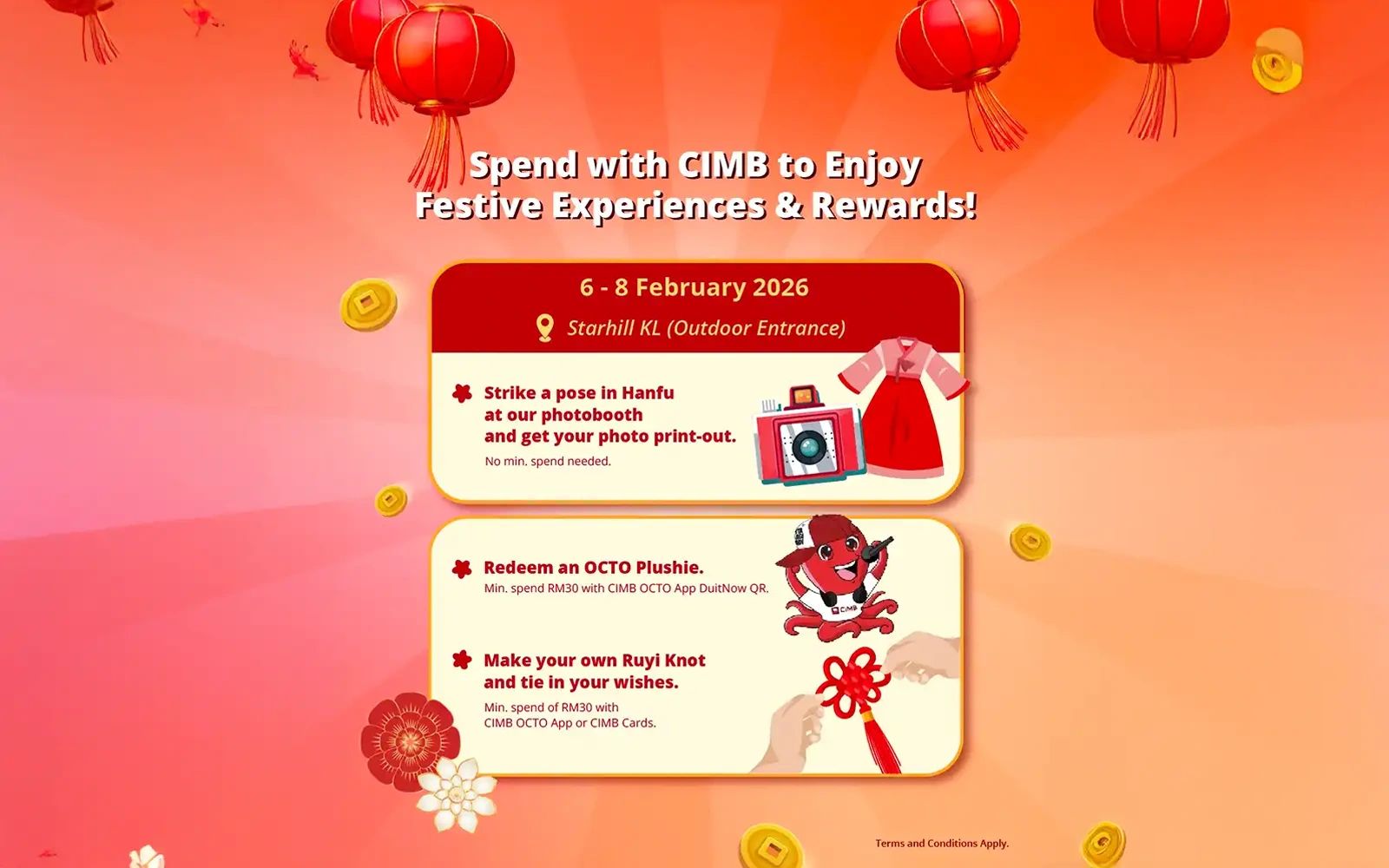 From Feb 6-8, CIMB is transforming The Starhill and Lot 10 into a connected festive playground, complete with a bustling market, live performances, interactive workshops and plenty of rewards.