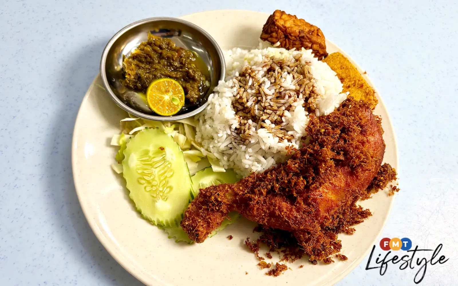 Best of all, the full ayam penyet set with tempeh, tofu, and a quarter leg of chicken costs only RM13.50.