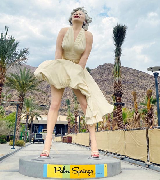 A 7.9m-tall statue of the Hollywood icon in her famous billowing white dress was unveiled in front of the Palm Springs Art Museum, facing Palm Canyon Drive, the city’s main tourist strip, on Sunday.