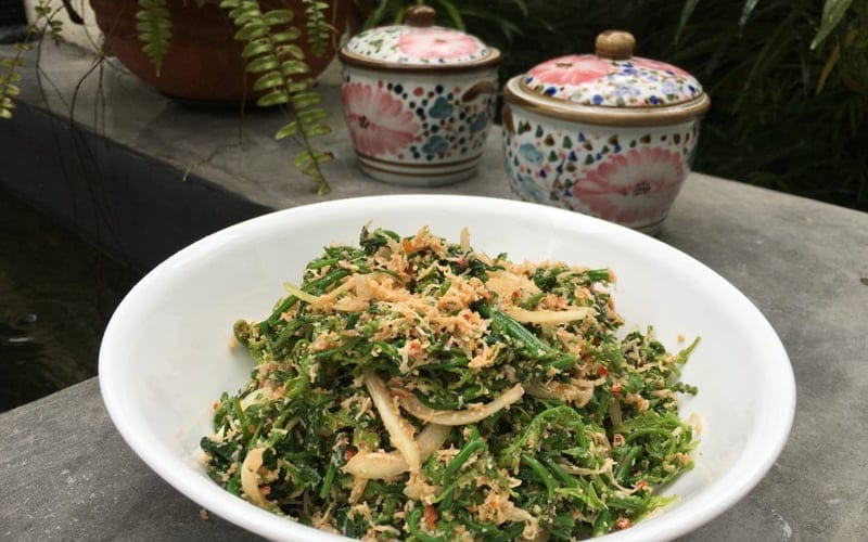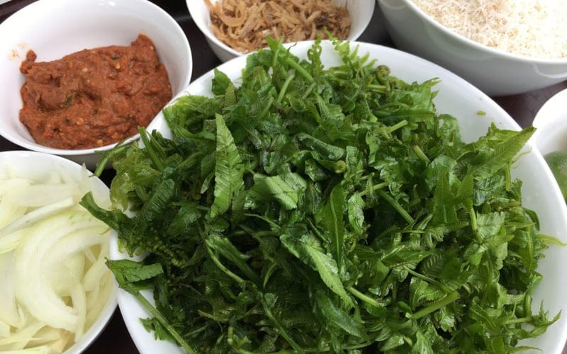 - Bring a pot of water to the boil. Add the pucuk paku and boil for three minutes. Remove from the water and set aside.