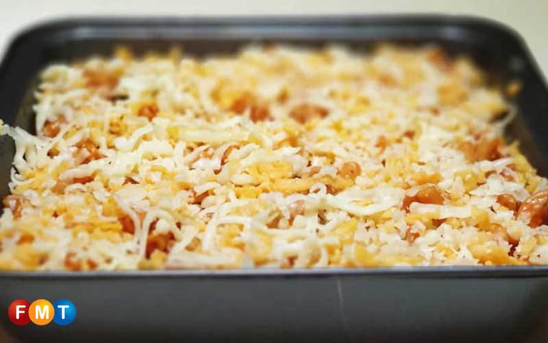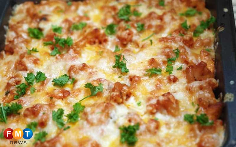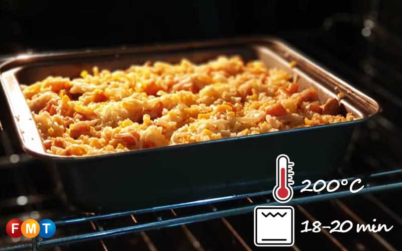 Bakar selama 18 hingga 20 minit (sehingga kerak keju keemasan terbentuk) dengan suhu 200°C