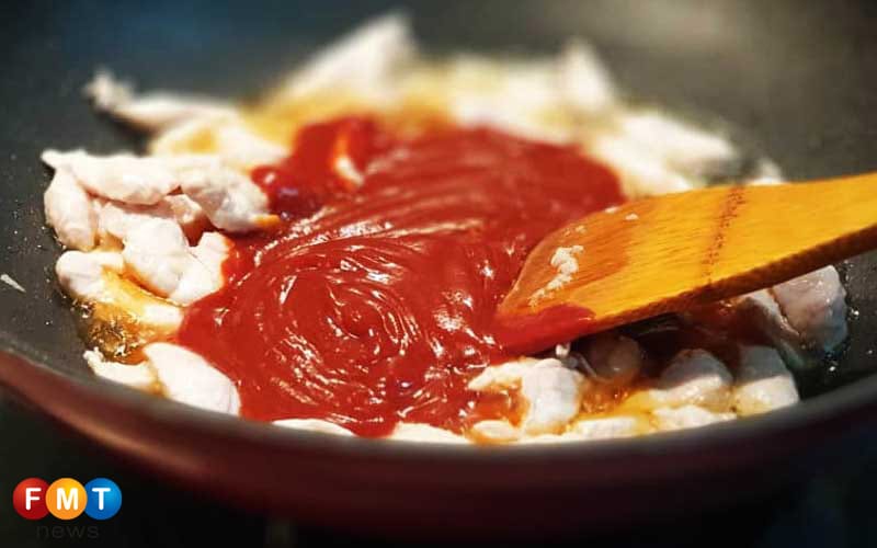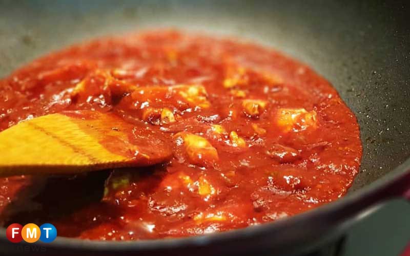 Masukkan sos pasta dan kacau sehingga ayam masak.