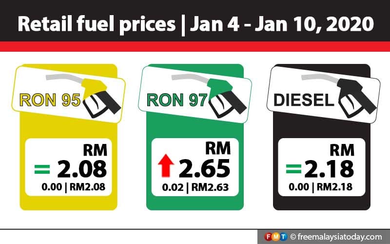 PETALING JAYA: The price of RON97 petrol will go up by 2 sen to RM2.65 per litre from midnight until Jan 10.