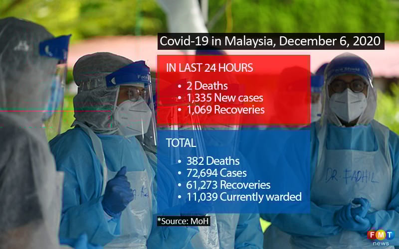 In a statement, Noor Hisham said the 1,335 cases brought the total number of infections in the country to 72,694.