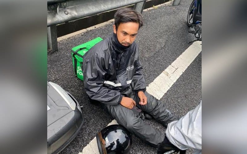 The GrabFood rider was shaken and bruised, and the motorcycle that he had used for almost three years was badly damaged.