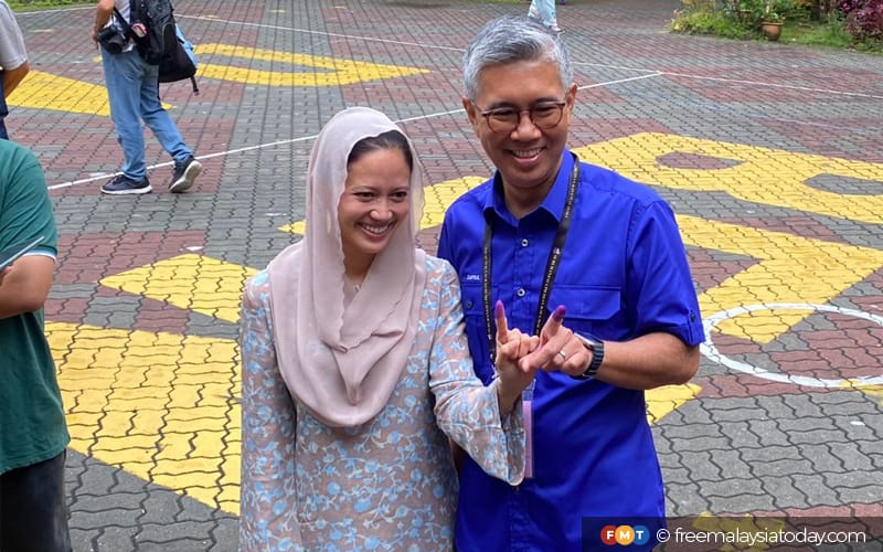 The Bersatu deputy president and his wife, Nomee Ashikin, arrived at 7.55am to cast their votes for the Tambun parliamentary seat and Hulu Kinta state seat.