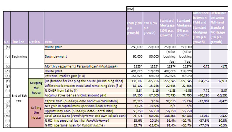 By the end of the stipulated fifth year, buyers would have already paid RM67,000 for the personal loan and should buyers chose to “sell” the property – assuming a 10% annual appreciation rate – FundMyHome claims that they will make total gross gains of RM76,776 (inclusive of the RM20,526 in capital gains and RM56,250 rental opportunity gains).