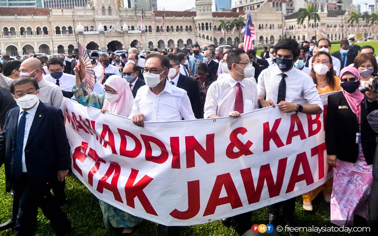A total of 107 opposition MPs tried to march from Dataran Merdeka to Parliament, to protest against the postponement of the final day of the special Dewan Rakyat sitting.