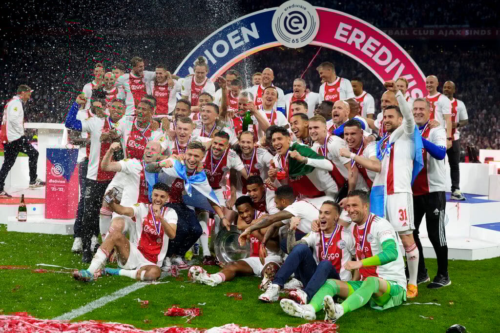 Ajax, who have now extended their record number of domestic league title wins to 36, move to 82 points from 33 games, four clear of second-placed PSV Eindhoven with one more round of fixtures to be played.