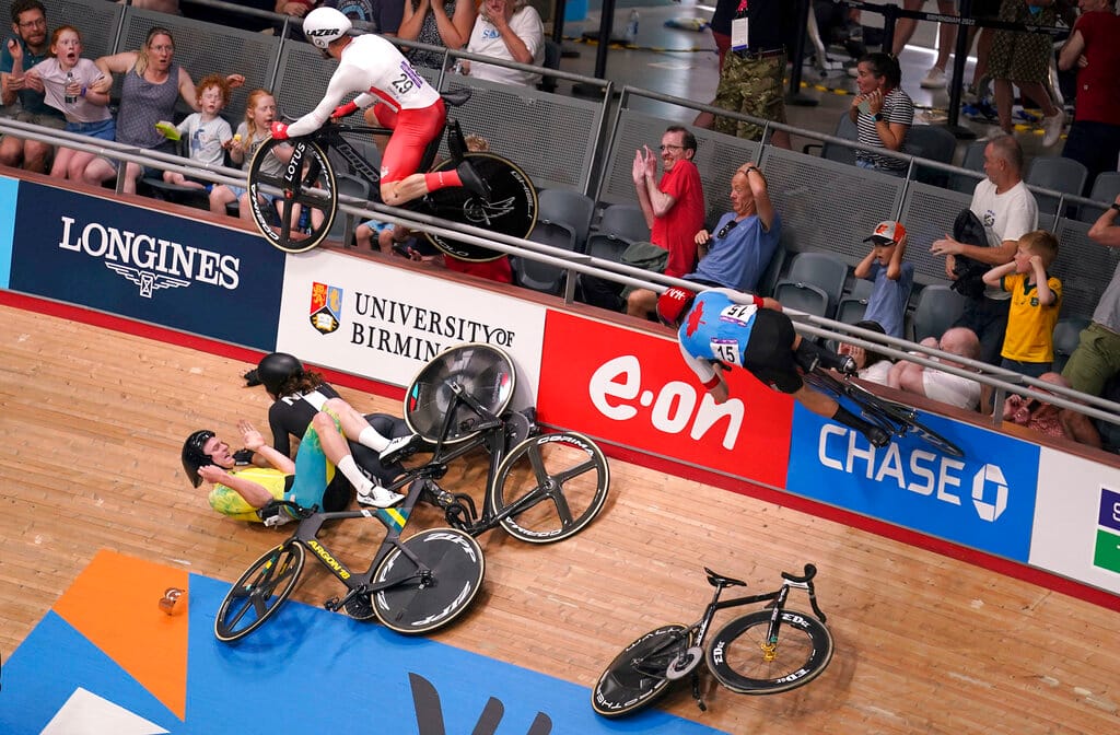 British Cycling tweeted: “Following a crash in the men’s scratch, Matt Walls & (the Isle of Man’s) Matt Bostock are being treated by medics before being taken to hospital for further treatment.