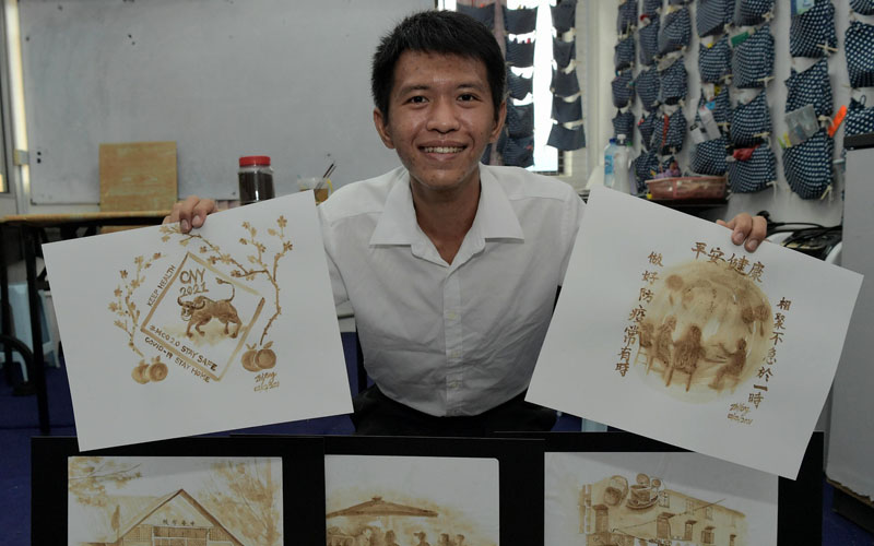 Kluang cafe owner produces CNY and Covid-19 paintings with coffee powder