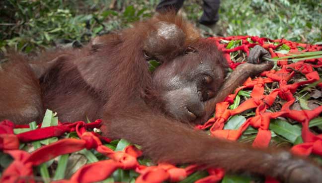 Indonesians arrested for shooting an orangutan some 130 times