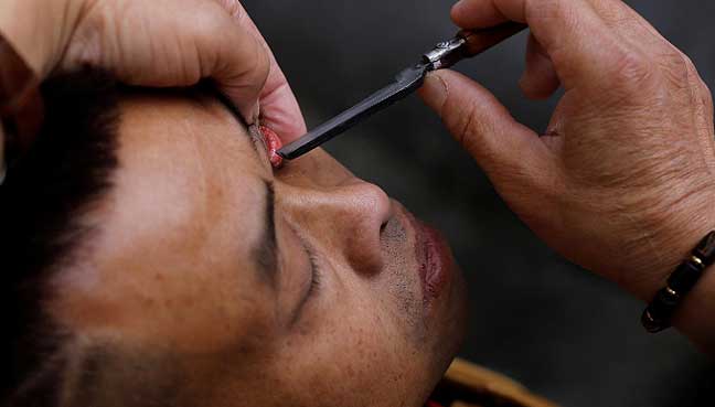 Flipping lids! Chinese barber offers eyelid shaves