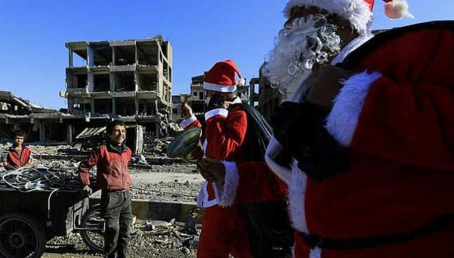 Father Christmas returns to war-ravaged Raqa