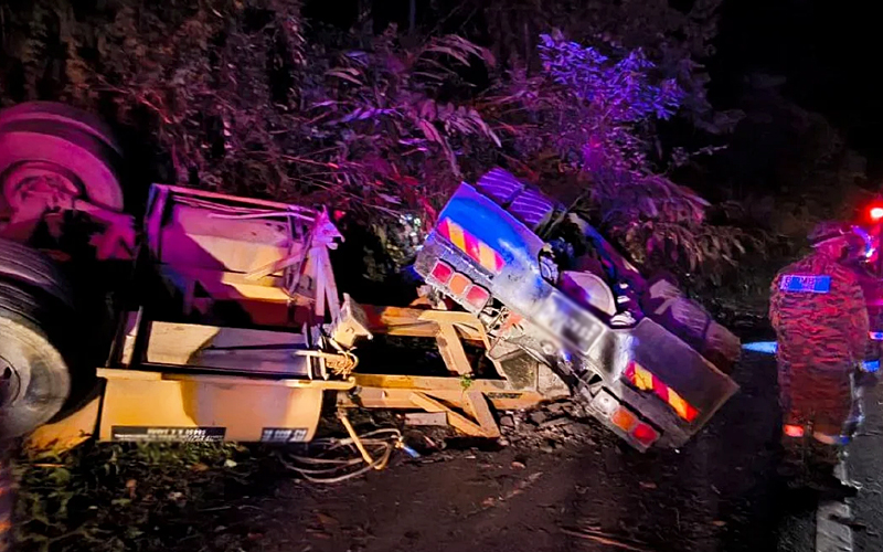 Terjun keluar lori terbabas, pemandu maut terhentak kepala atas jalan