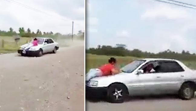 Isteri curang dihukum suami, diikat atas kereta