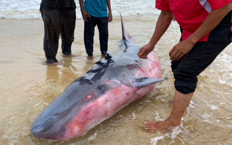 Paus betina terdampar di Pantai Merchang