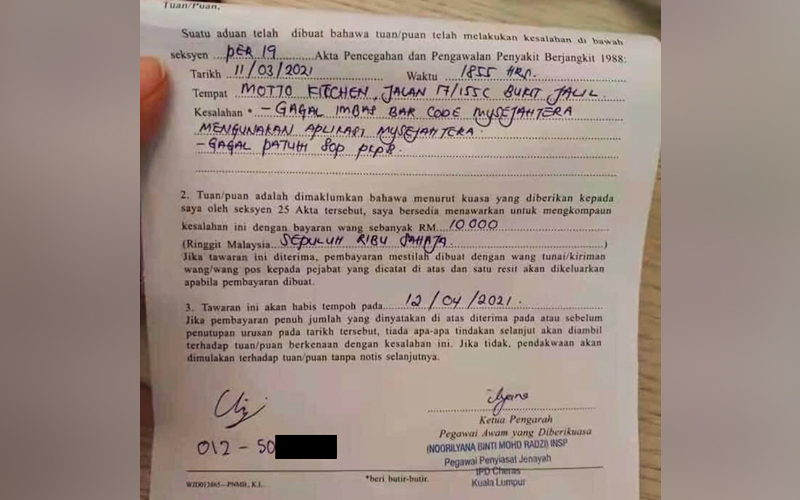 Dikompaun RM10,000 sebab tak daftar MySejahtera, buku di kedai, kata polis