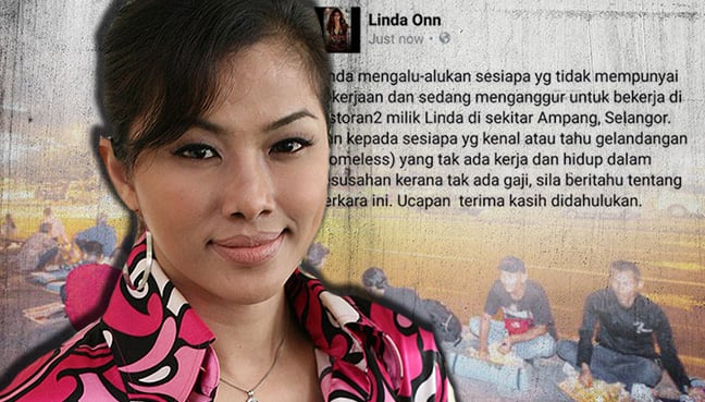 Linda Onn tawar pekerjaan kepada gelandangan