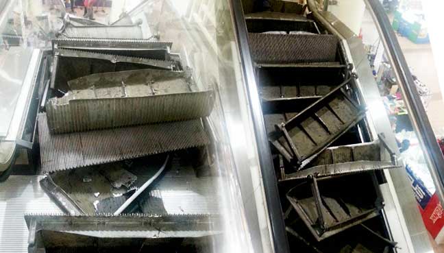 Escalator explodes at shopping mall