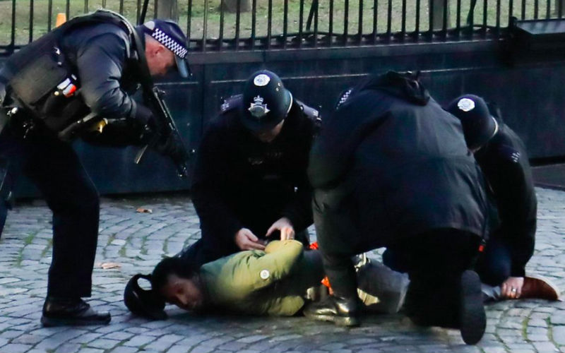 Armed British police use stun gun on man inside grounds of parliament