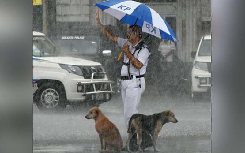 Polis Kolkata payung anjing dalam hujan sentuh hati warganet
