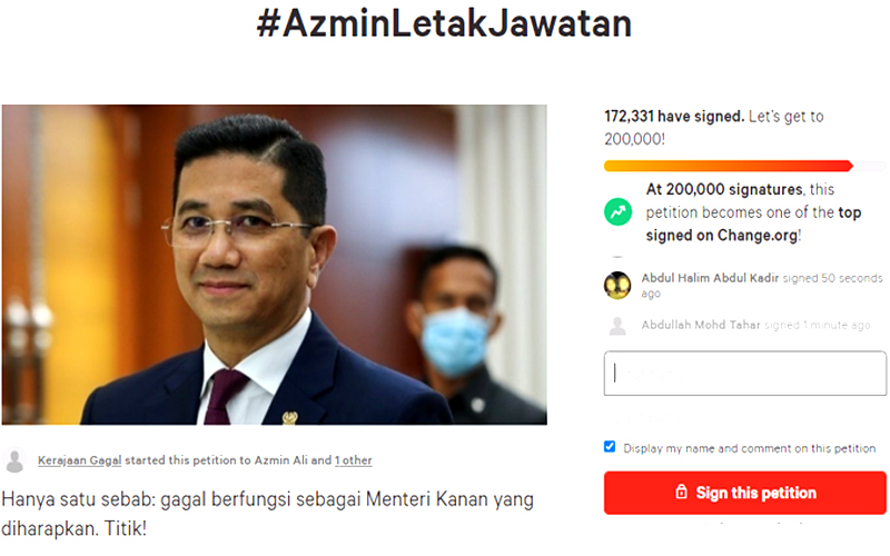 Petisyen desak Azmin letak jawatan raih lebih 170,000 tandatangan
