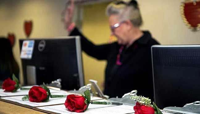 Valentines get quickie marriage licenses at Las Vegas airport