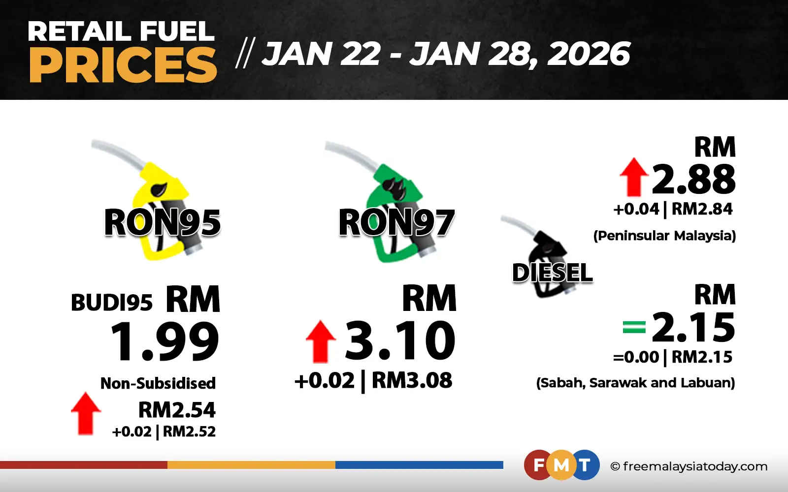 Price hikes for non-subsidised RON95, RON97, diesel