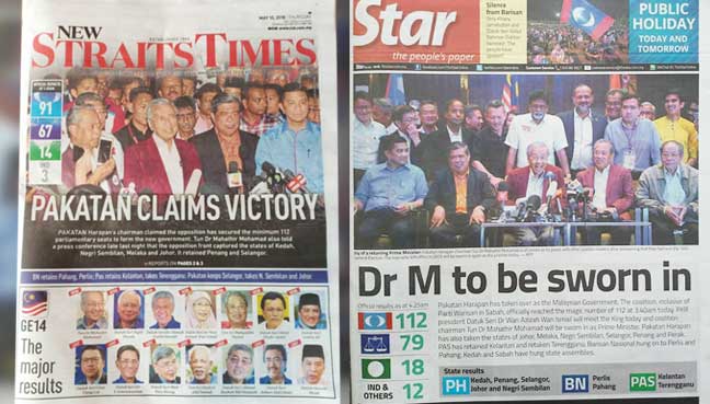 Selepas BN kalah, ini tajuk akhbar cetak hari ini
