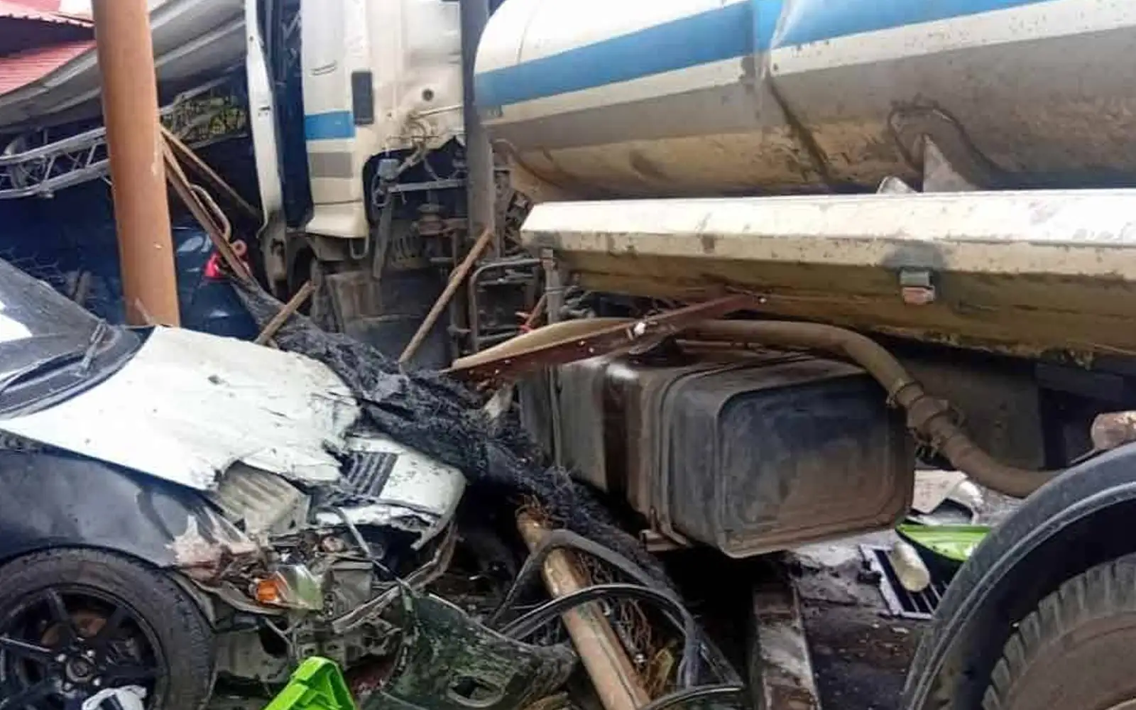 Driver, helper hurt as water tanker crashes into homes