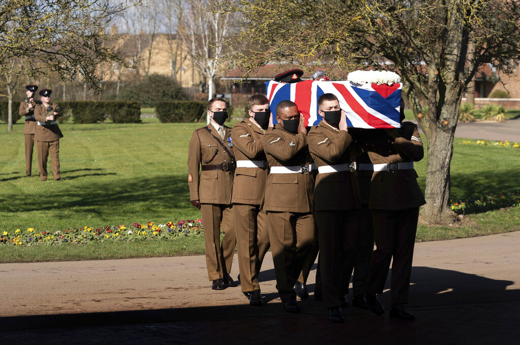 Military honours and fly-past mark funeral of Britain’s Captain Tom