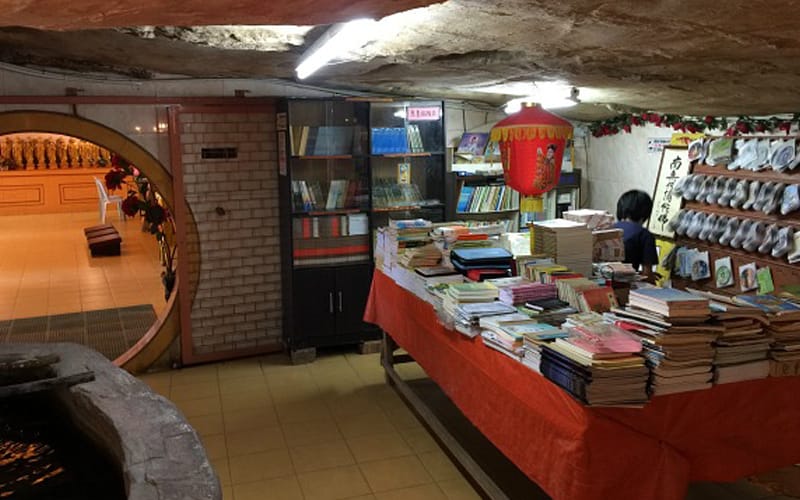 A cosy shop selling books and CDs on Buddhism is tucked away at the rear of the cave.