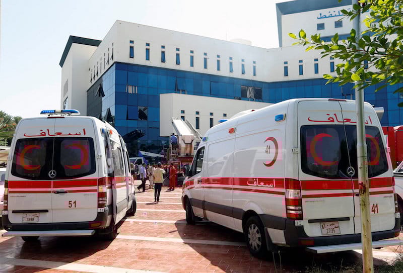 Explosions could be heard near Matiga airport but it was not immediately clear who had fired the rockets, one of which could be seen hitting the nearby Mediterranean Sea without causing casualties.