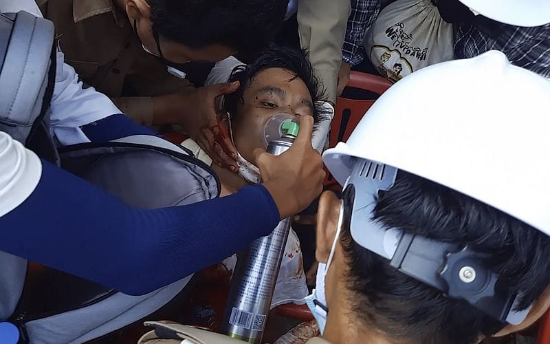 Several wounded people were hauled away in Yangon by fellow protesters, leaving bloody smears on pavements, media images showed. One man died after arriving at a hospital with a bullet in his chest, said a doctor who asked not to be identified.