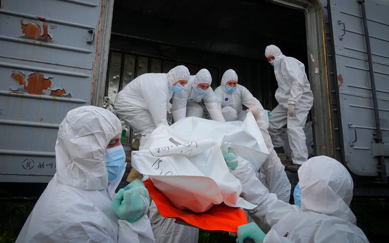 “Most of them were brought from the Kyiv region, there are some from Chernihiv region and from some other regions too,” Volodymyr Lyamzin, the chief civil-military liaison officer, told Reuters on Friday as stretcher-bearers in white, head-to-toe protective suits lifted bodybags into the boxcars.