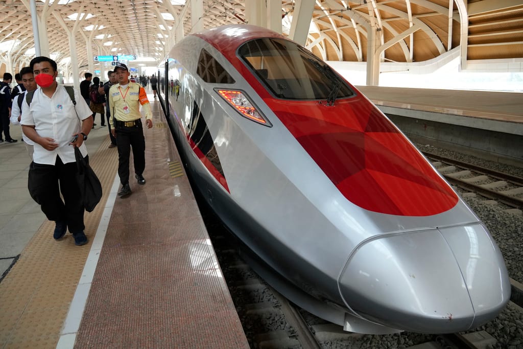 The Chinese-made bullet train named “Whoosh” is built to take more than 600 people to and from Jakarta and the Javan city of Bandung in 45 minutes and is part of China’s Belt and Road infrastructure initiative.