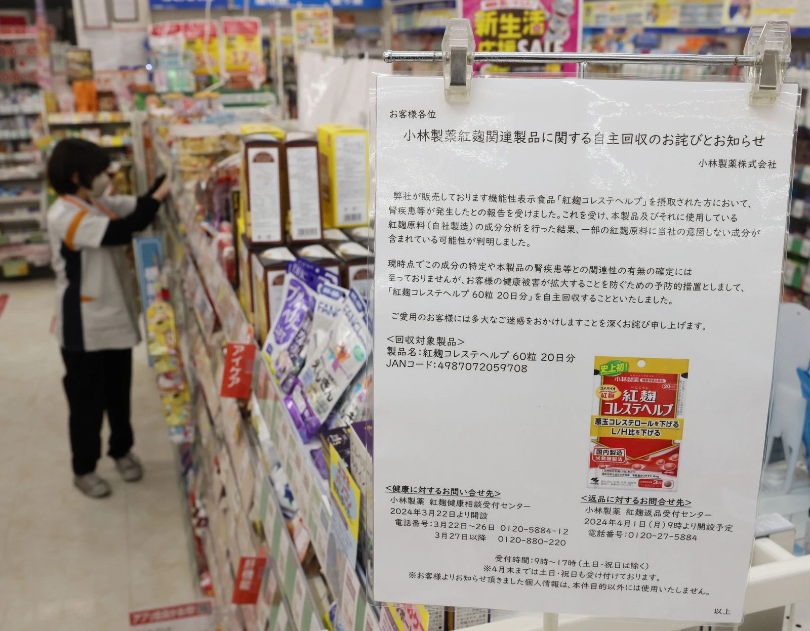 Kobayashi Pharmaceutical announced on March 22 that it was recalling three kinds of over-the-counter tablets containing “beni koji” after customers reported kidney problems.